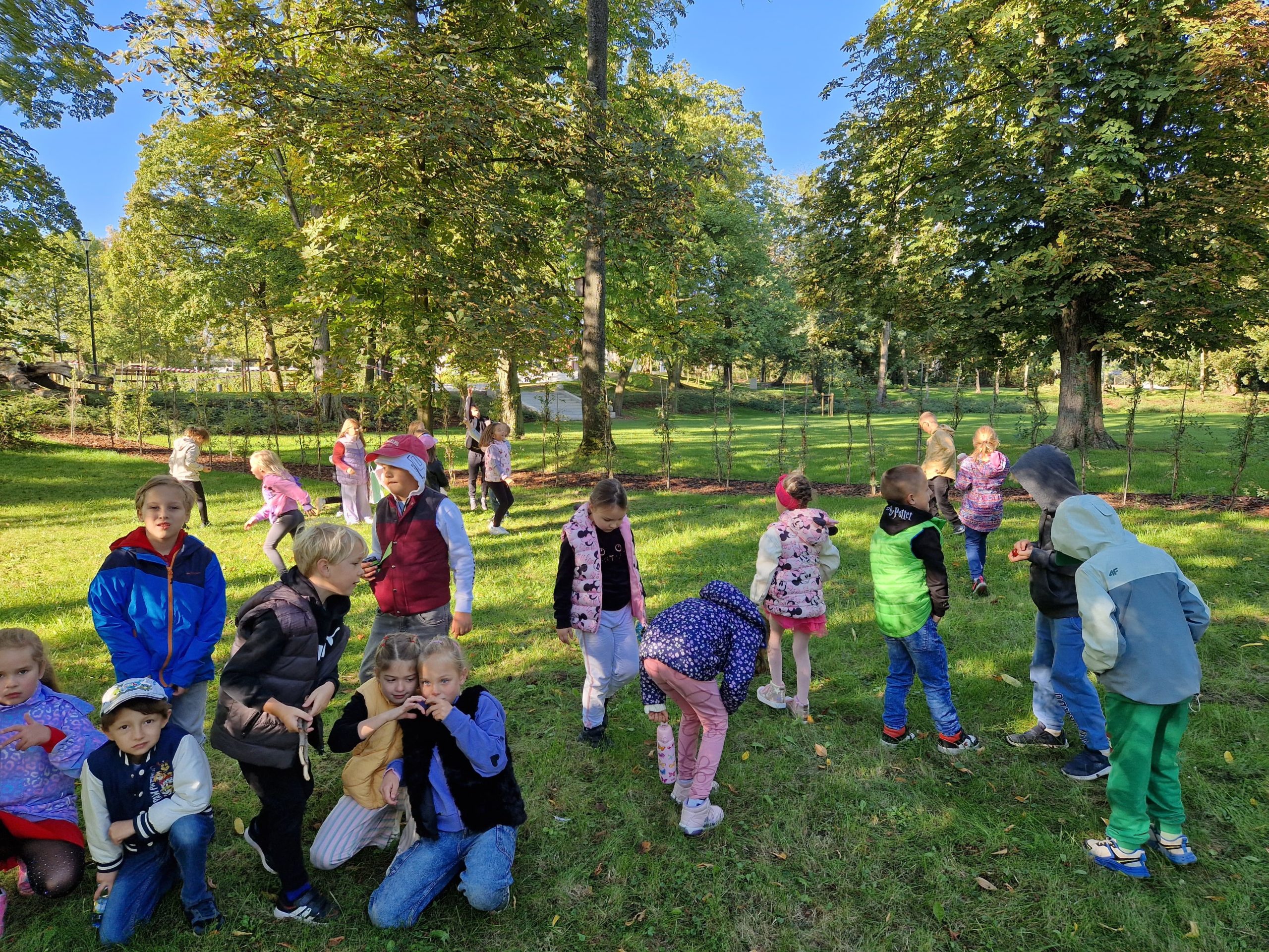 Podczas spaceru dzieci podziwiały barwy jesiennych drzew, zbierały kasztany i kolorowe liście. Była to świetna okazja, aby połączyć naukę z zabawą i wspólnie cieszyć się urokami tej pięknej pory roku.