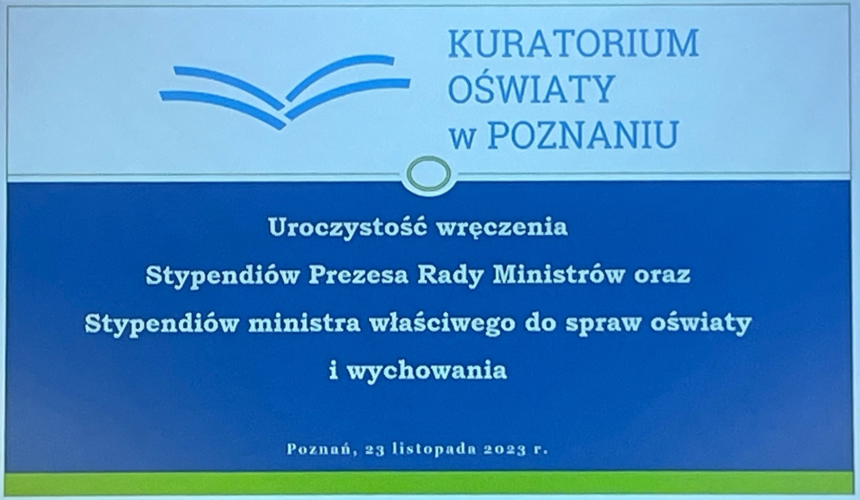 W dniu 23 listopada 2023 roku w Sali Sesyjnej Wielkopolskiego Urzędu Wojewódzkiego w Poznaniu odbyła się uroczystość wręczenia Stypendiów