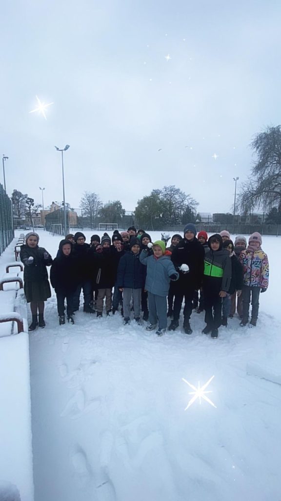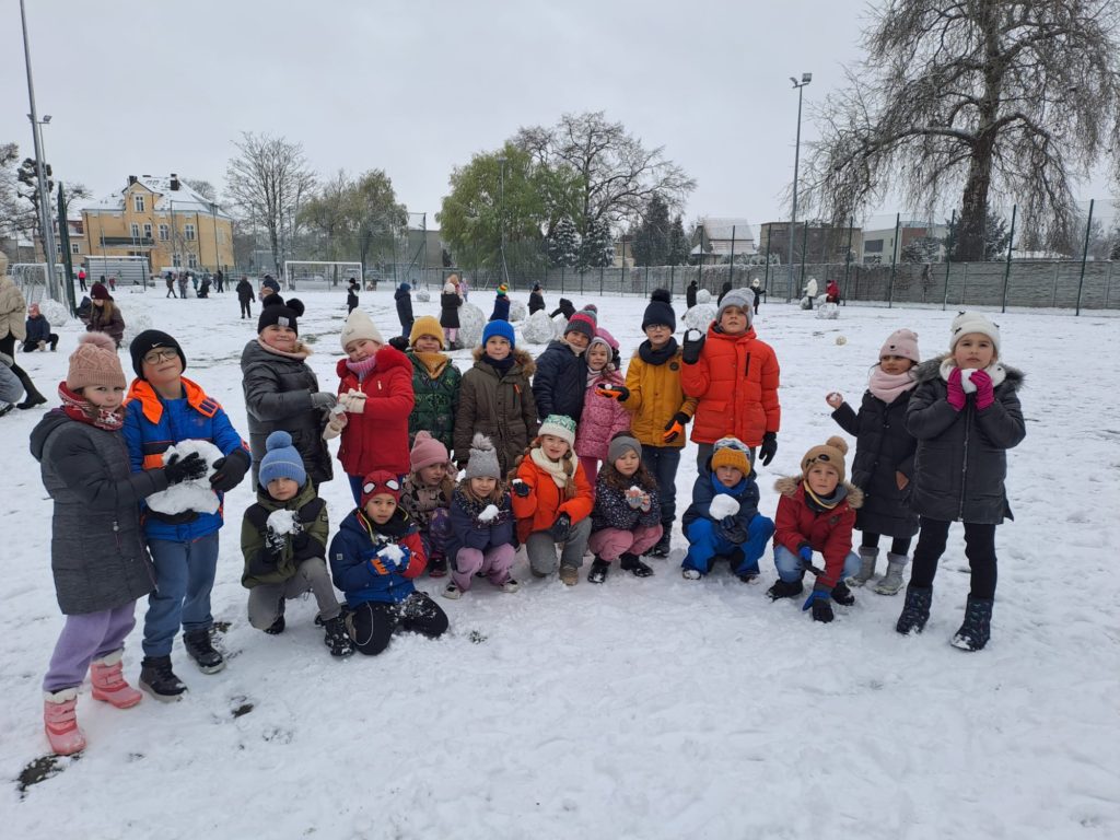Pierwszy śnieg przyniósł uczniom klasy 2a wiele radości i okazję do wspólnej aktywności na świeżym powietrzu. Dzieci bawiły się na śniegu, lepiły śnieżne kule i