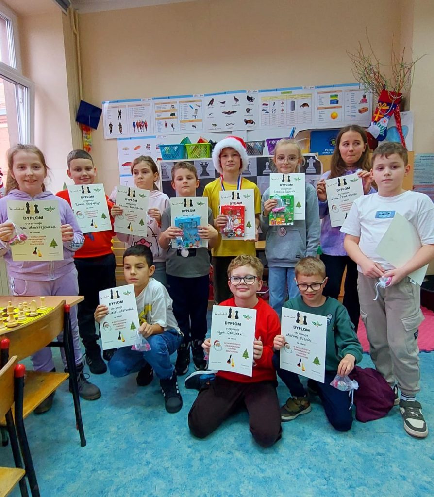 Dziś w świetlicy szkolnej odbył się Mikołajkowy Mini Turniej Szachowy, który dostarczył nam wielu emocji, sportowej rywalizacji i świetnej zabawy. Nasi młodzi szachiści pokazali ogromne