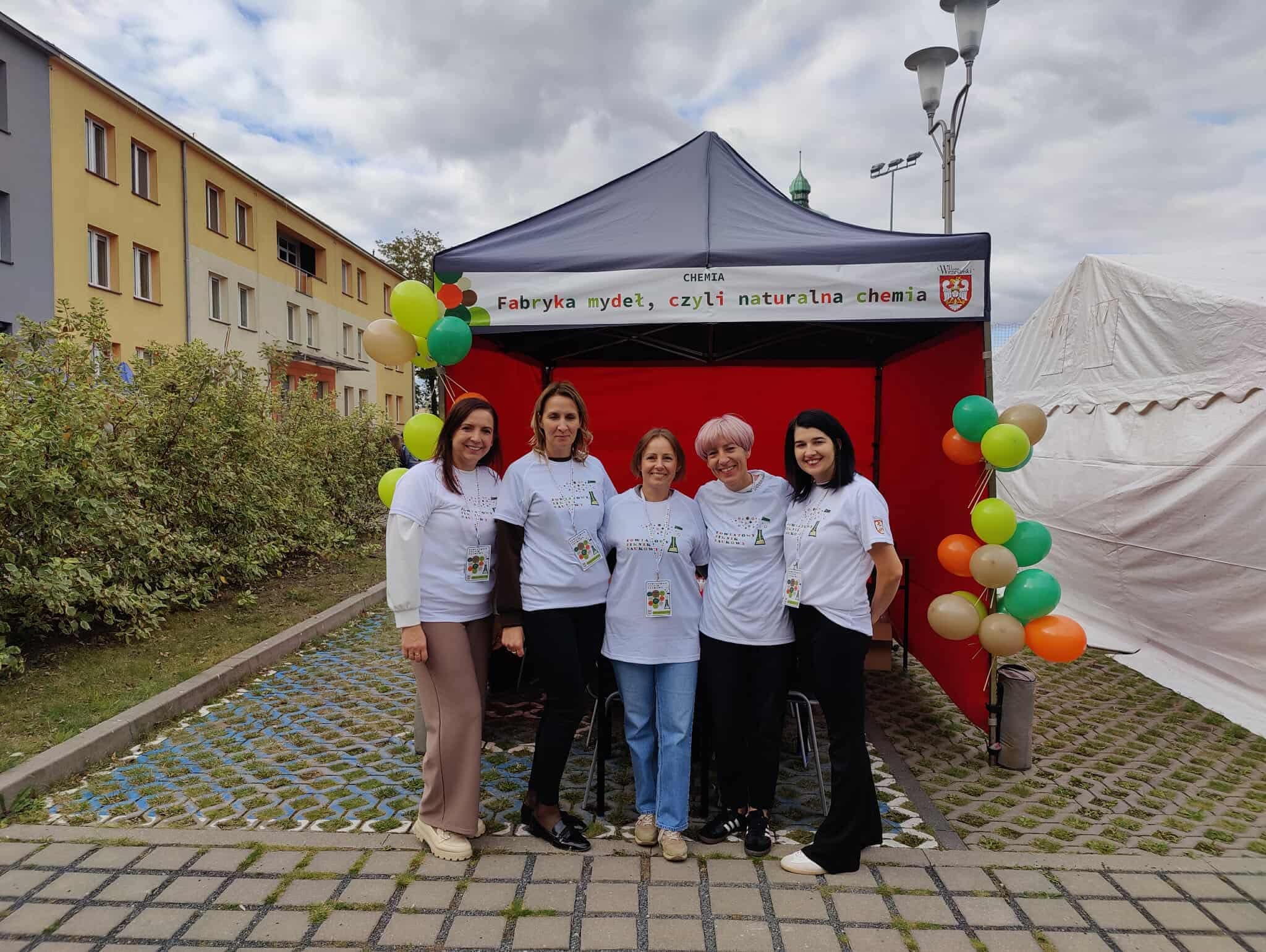 Naszą szkołę reprezentowały p. Magdalena Wojciechowska oraz p. Magdalena Szypulińska, które wspólnie z uczennicami SSP1 ,,Odkrywały matematyczny świat”. P. Justyna Borowczyk we współpracy z nauczycielami chemii powiatu wrzesińskiego przygotowywała mydełka – ,,Fabryka mydeł, czyli naturalna chemia”.