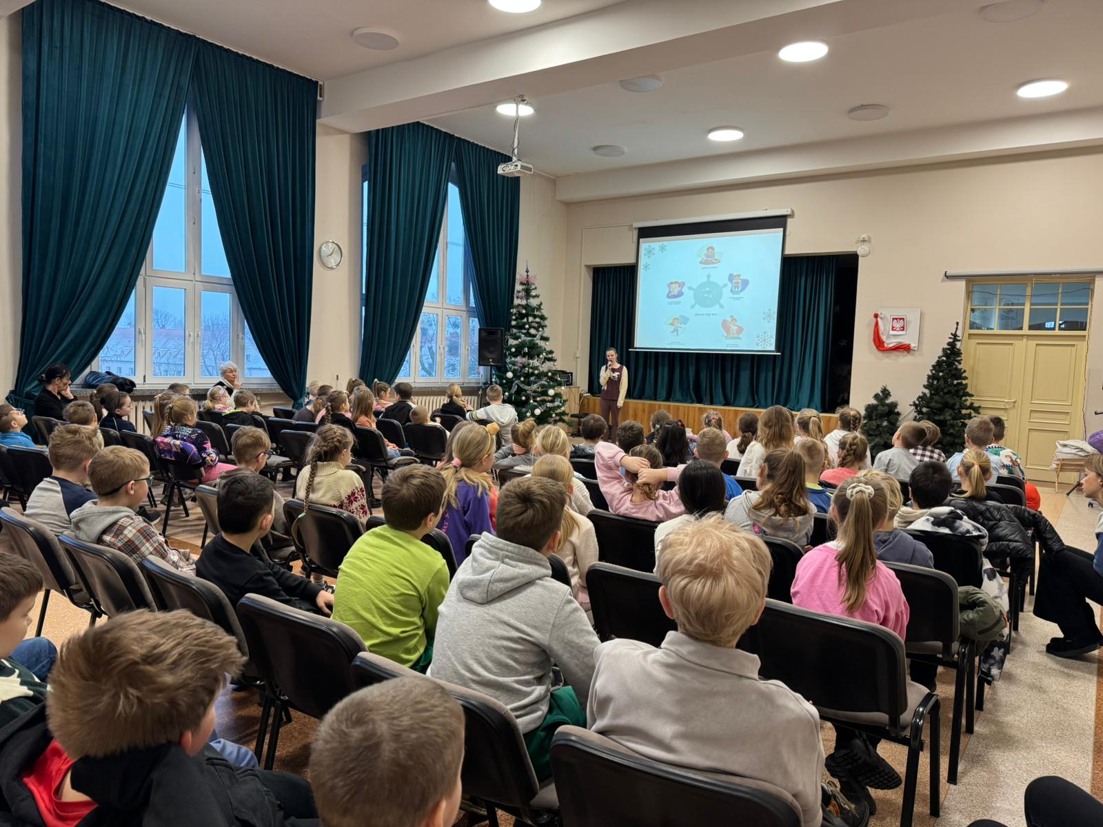 Kolejna część spotkania poświęcona była bezpieczeństwu podczas ferii zimowych. Omówiono zasady bezpiecznej zabawy na śniegu i lodzie, przypomniano o konieczności korzystania z wyznaczonych miejsc do zabaw oraz o odpowiednim ubiorze dostosowanym do warunków atmosferycznych.