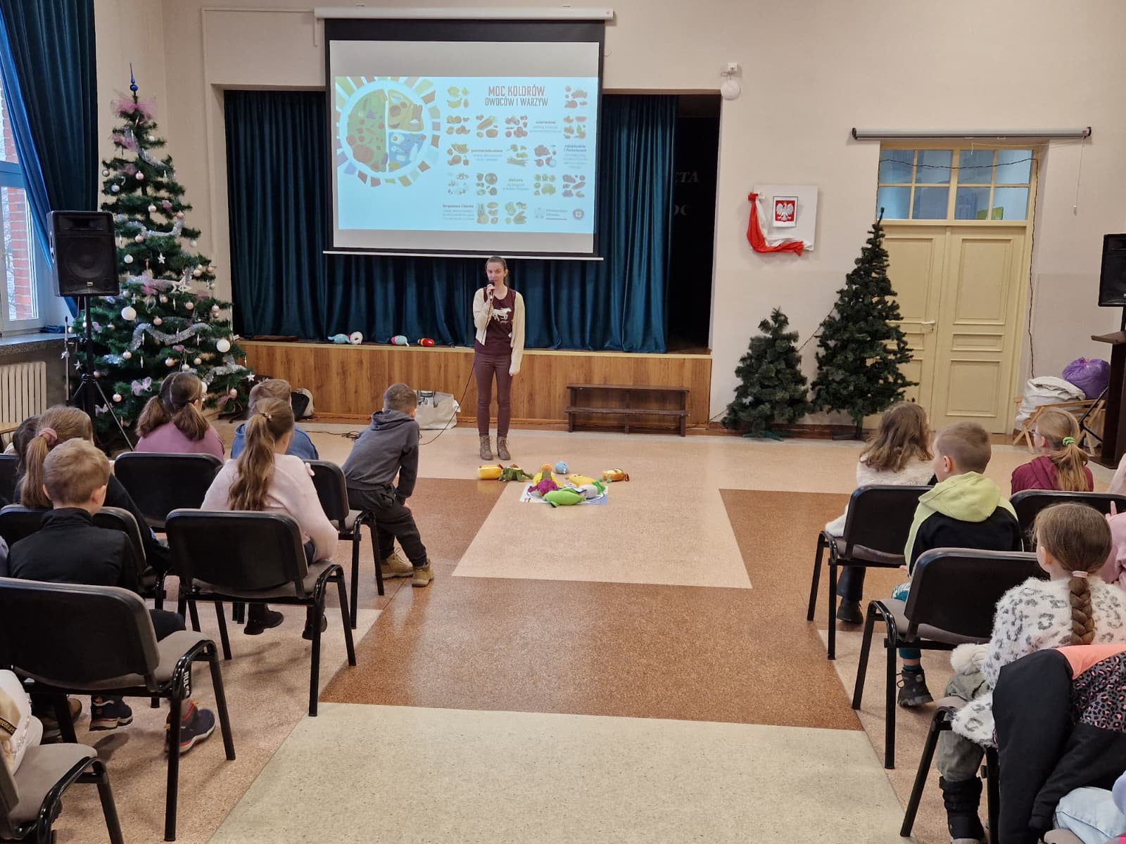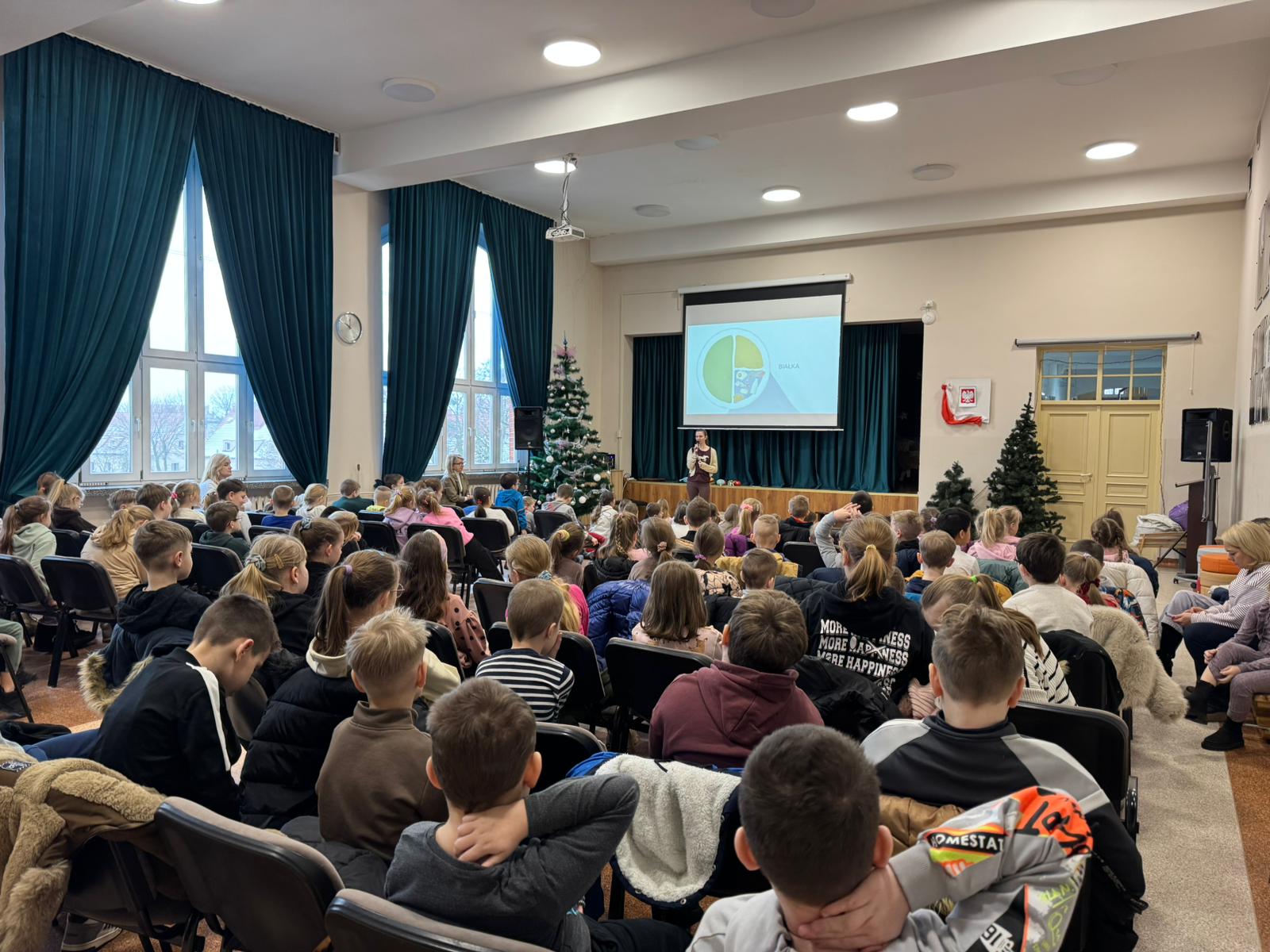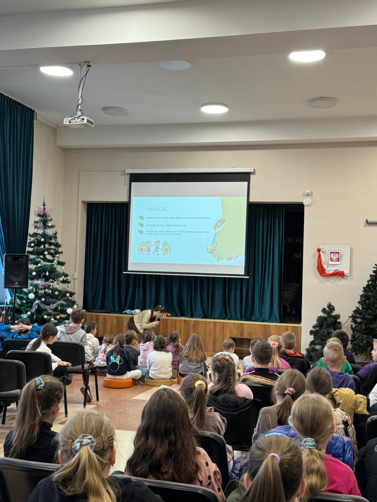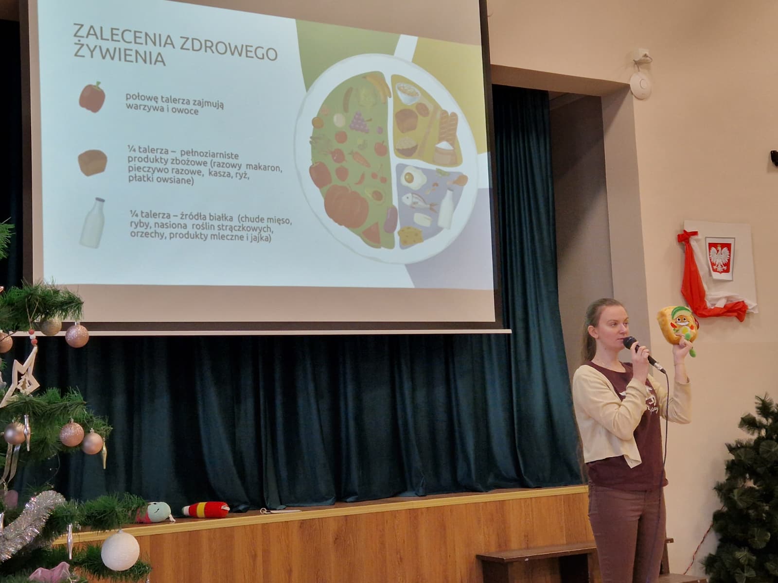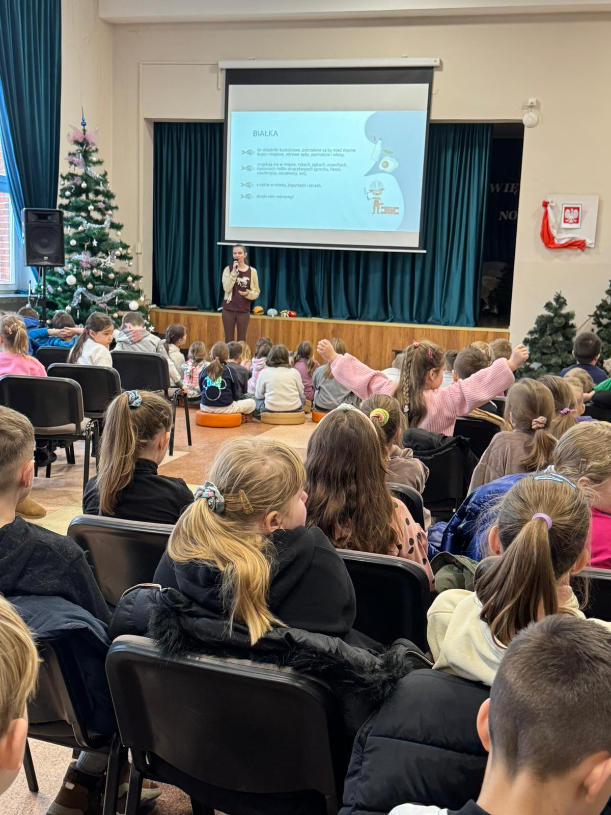 Podczas zajęć uczniowie zapoznali się z pojęciem „talerza zdrowia”, stanowiącego graficzne przedstawienie zasad prawidłowego odżywiania. Omówiono znaczenie poszczególnych grup produktów spożywczych, takich jak warzywa, owoce, produkty zbożowe, nabiał, mięso oraz tłuszcze. Dzieci dowiedziały się, jak ważne jest regularne spożywanie posiłków, odpowiednie nawodnienie organizmu oraz ograniczanie spożycia słodyczy.